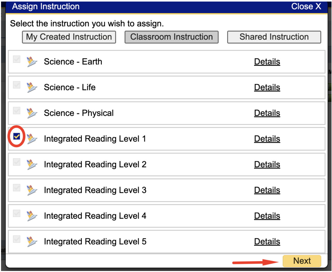 Whether you are assigning one unit or several units of Integrated reading to a class or students, you will follow the steps below.